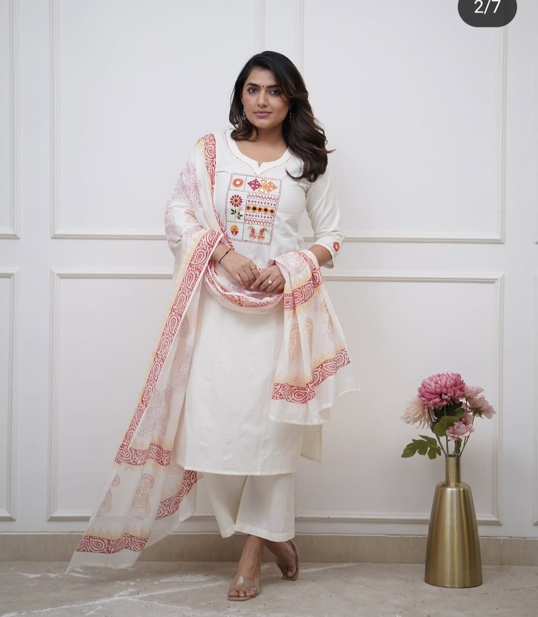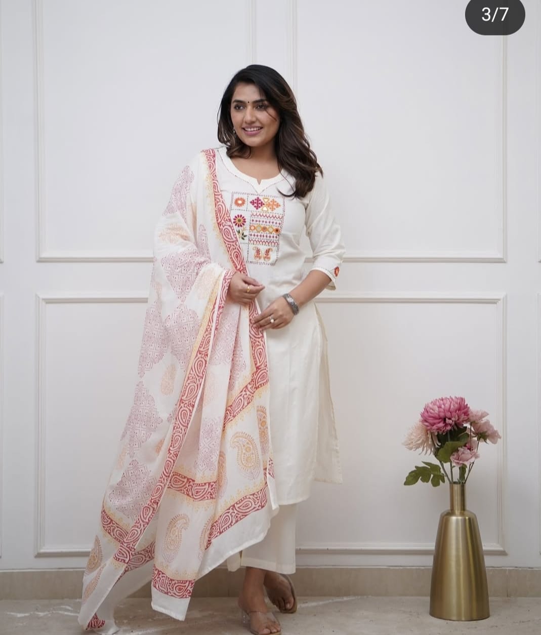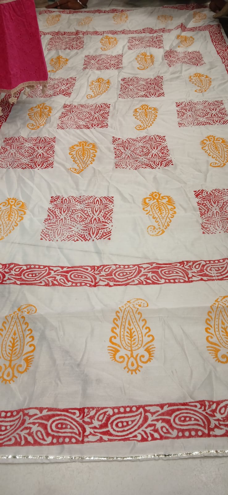 Dupatta __ full big size with full hand block print and side gotta las