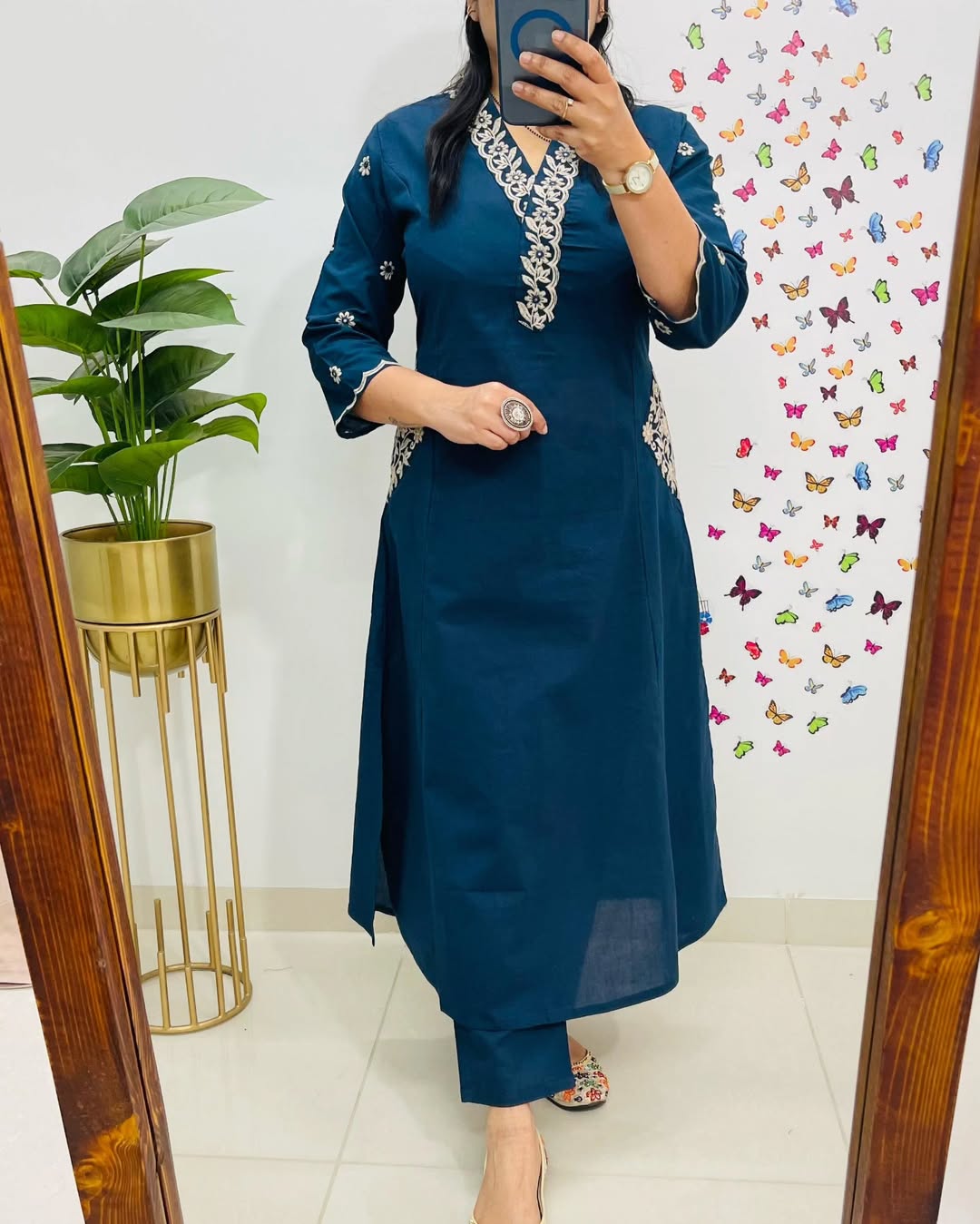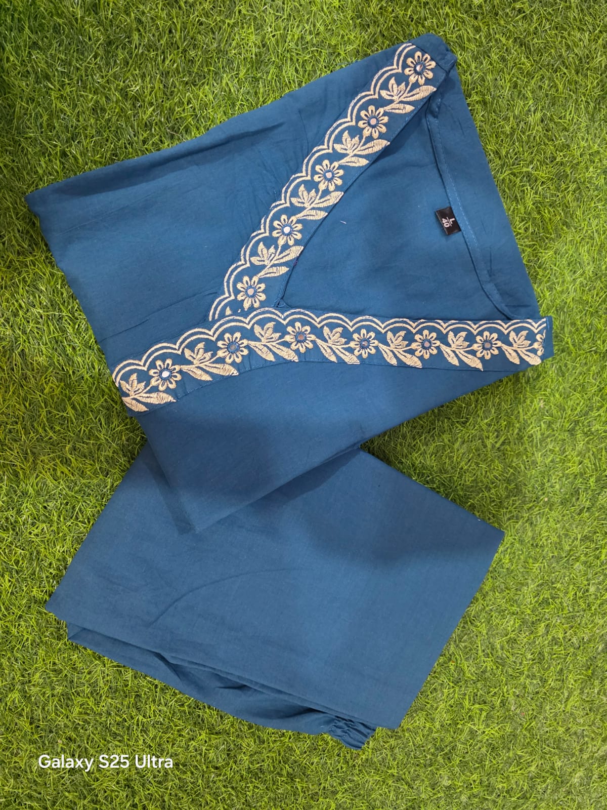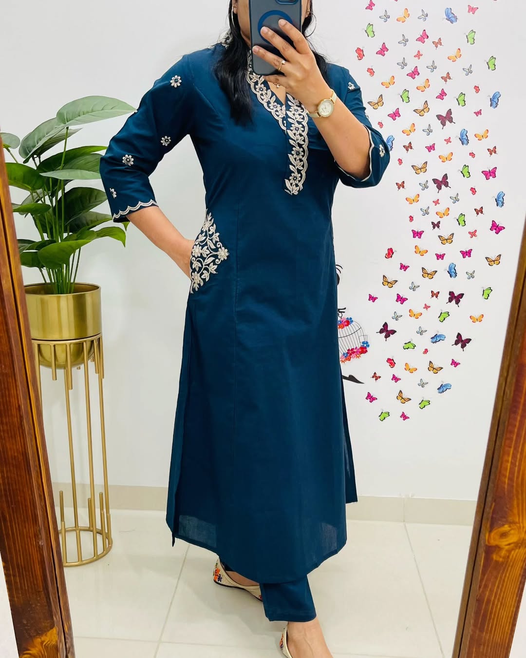 Designer Top Pant set in Fine Cotton With Heavy thread Embroidery work on the yoke & Both side Pockets...