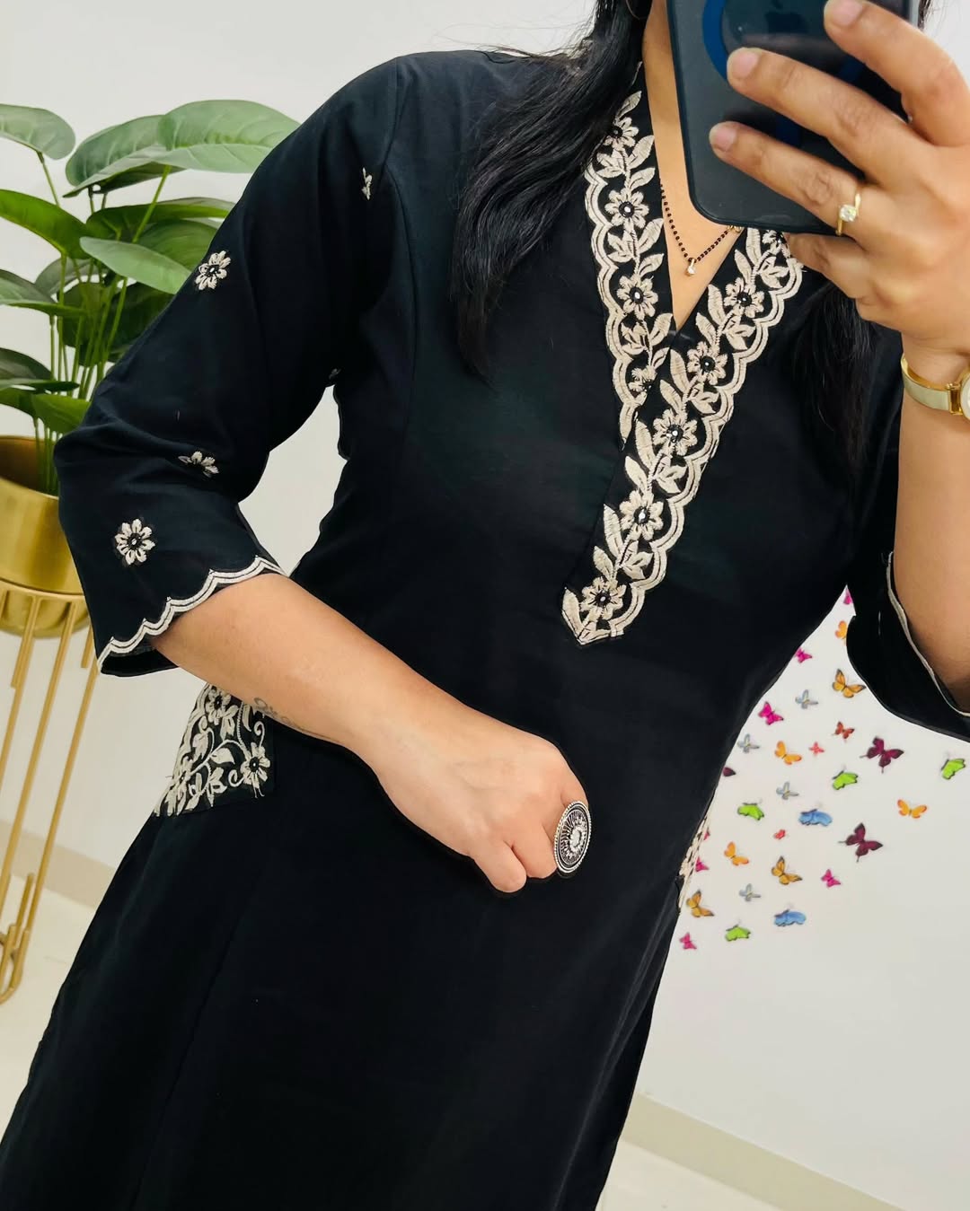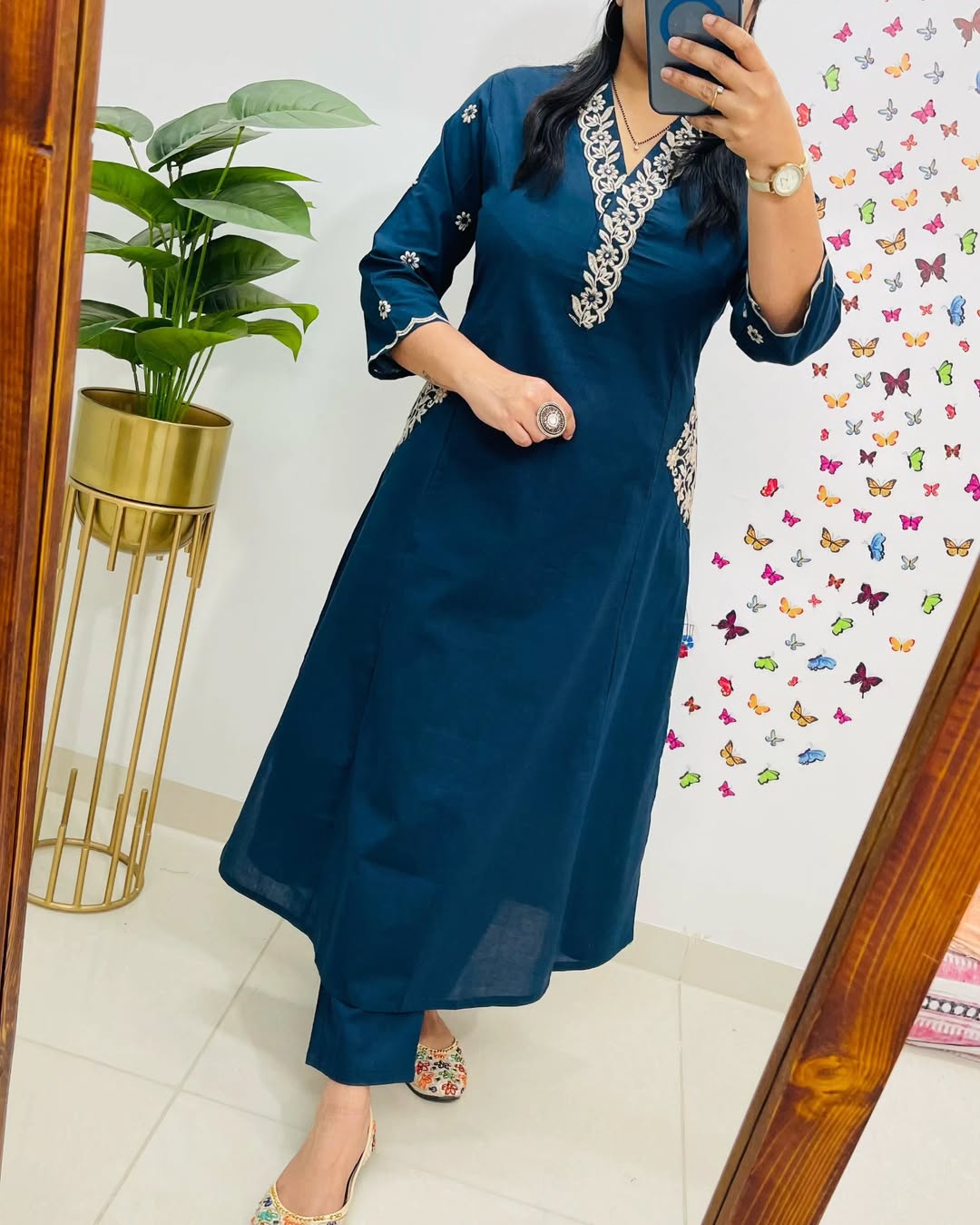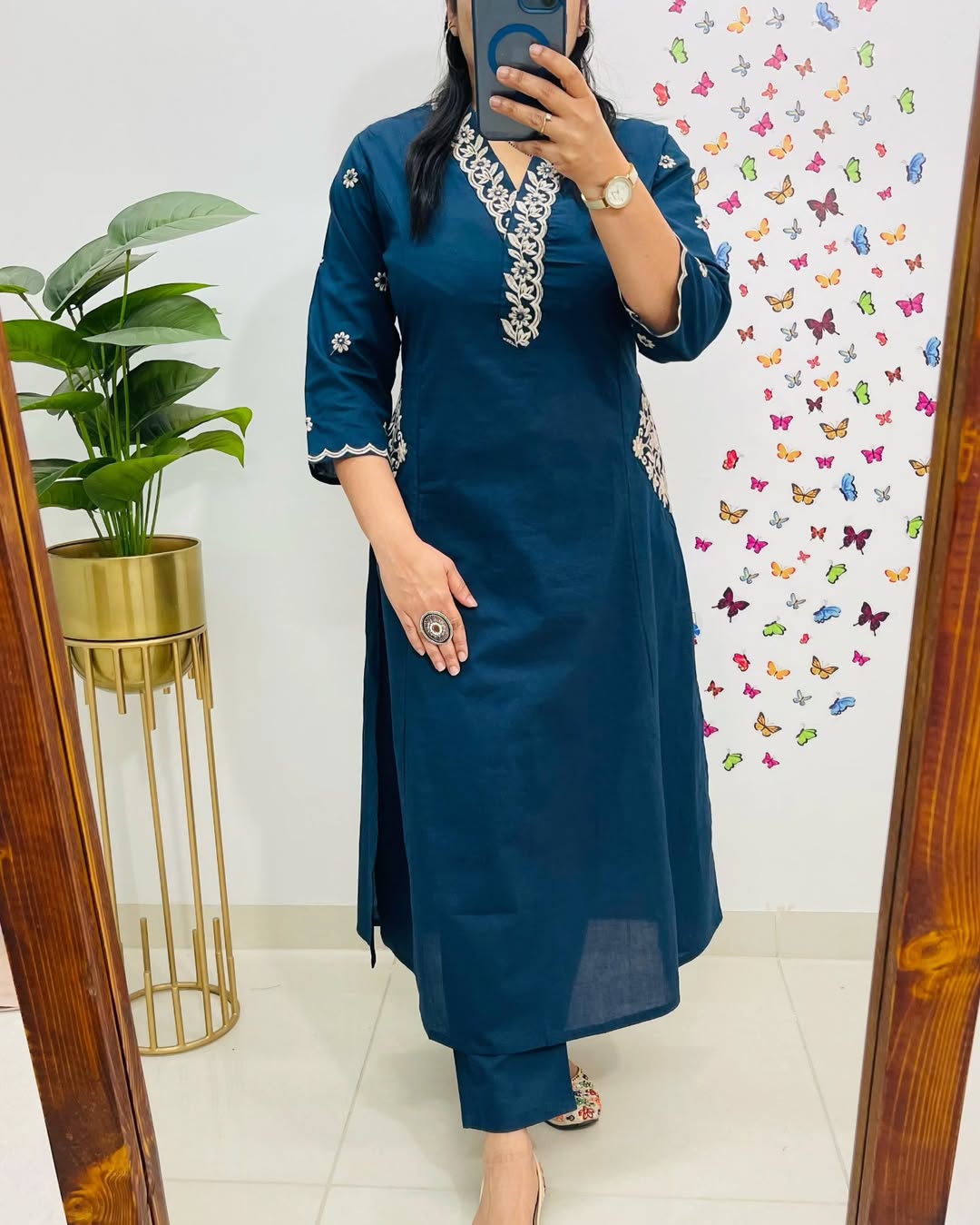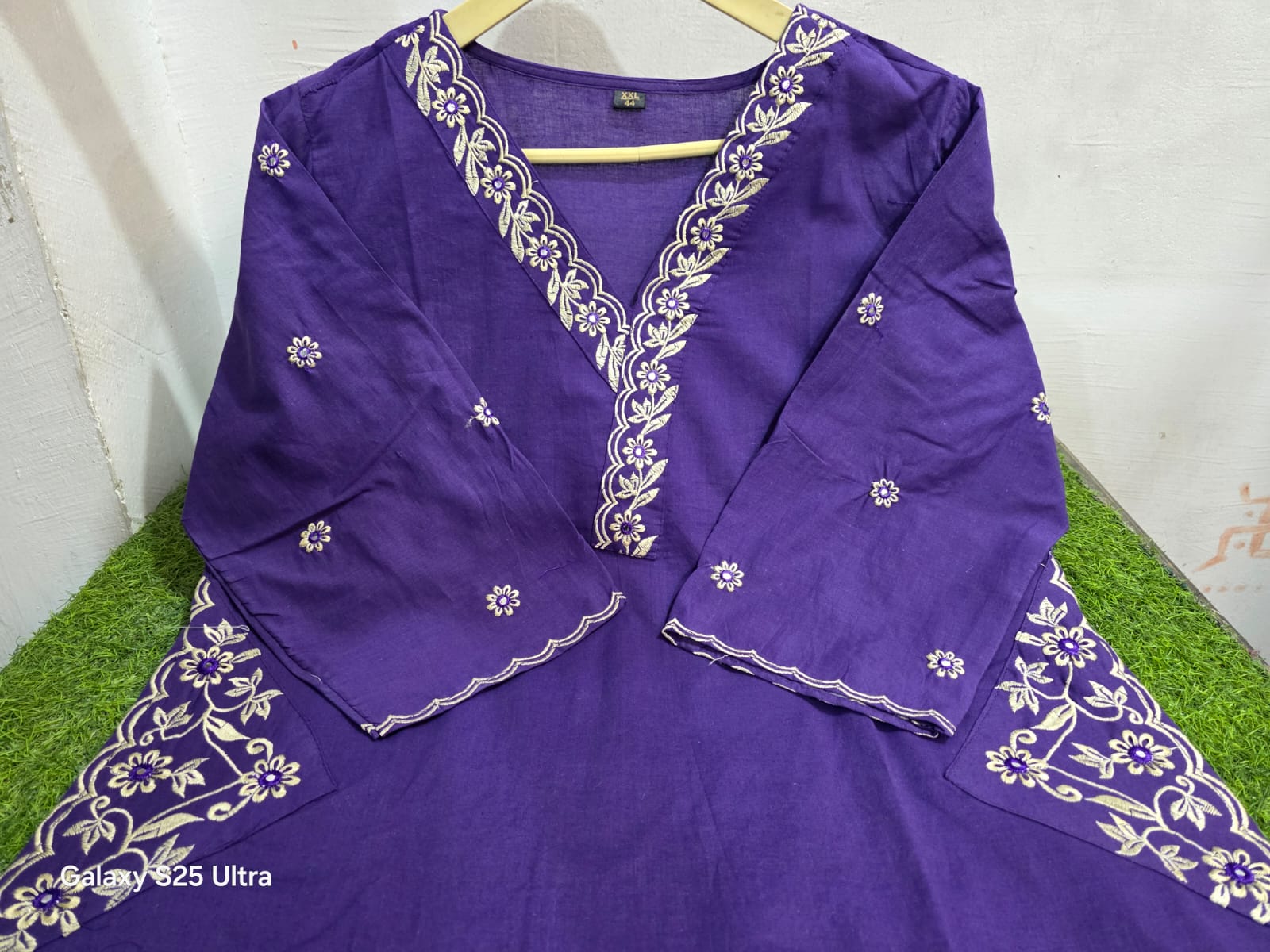 Designer Top Pant set in Fine Cotton With Heavy thread Embroidery work on the yoke & Both side Pockets...