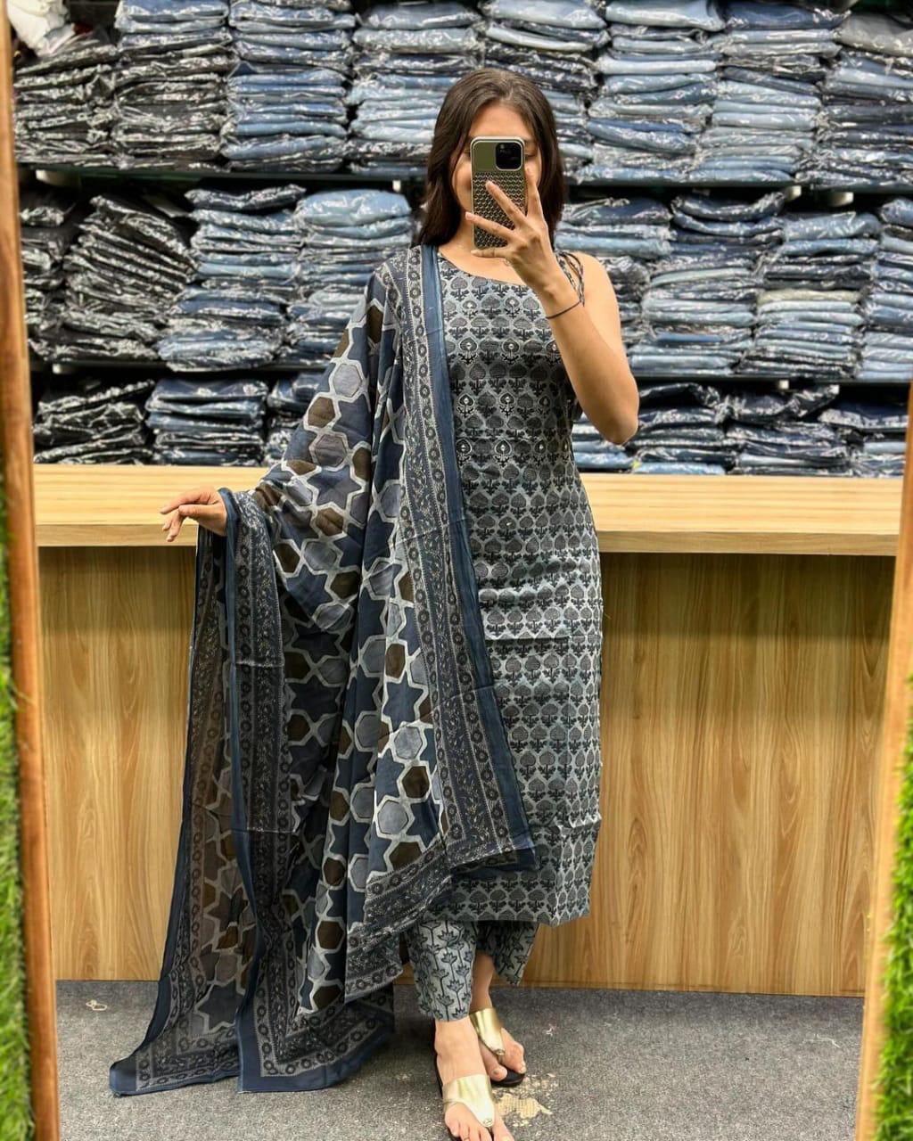 paired with printed original cotton pants Bottom and full size duppta