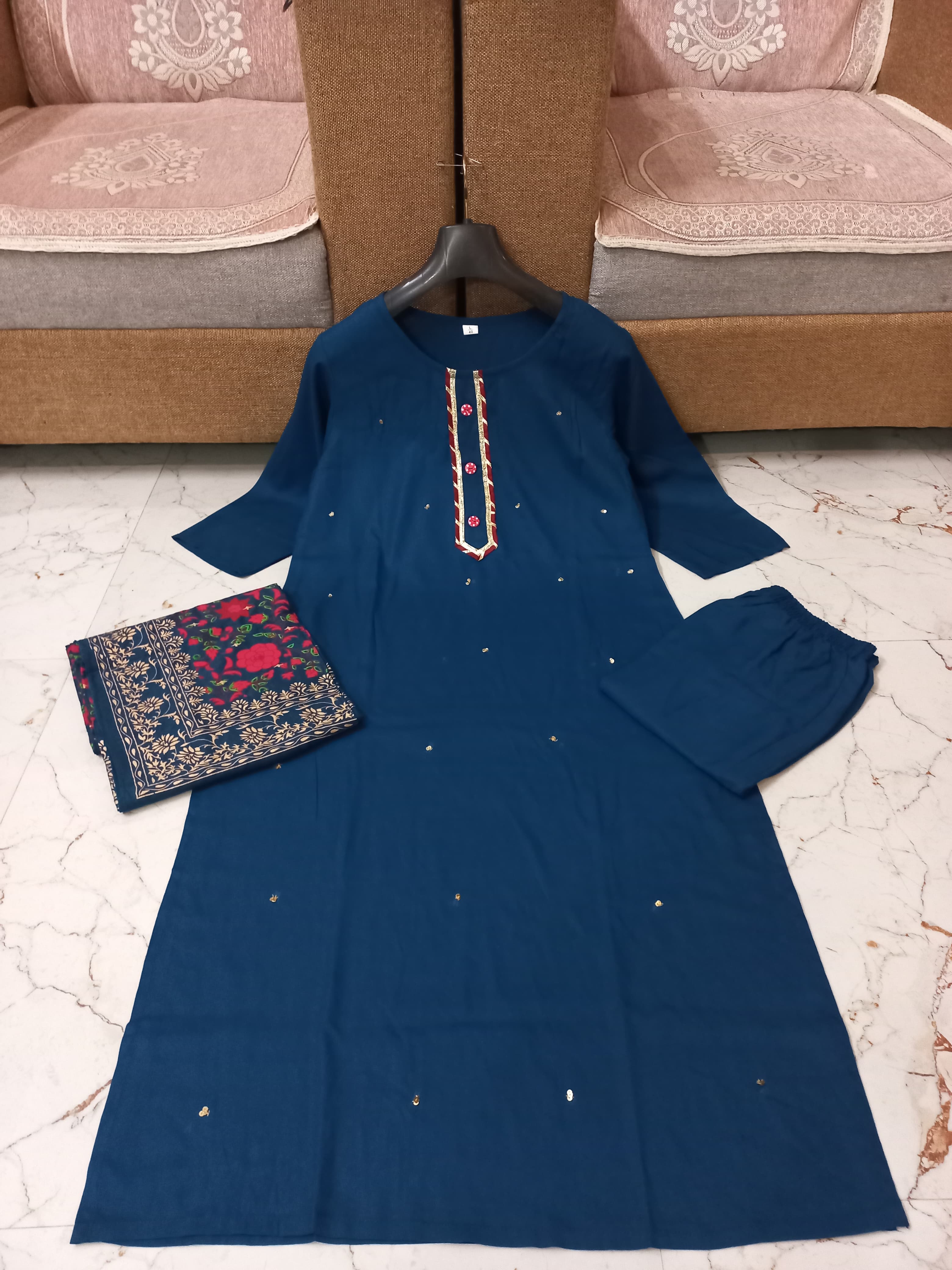 Work- Heavy Adda hand work all over kurti & lace work & batan work