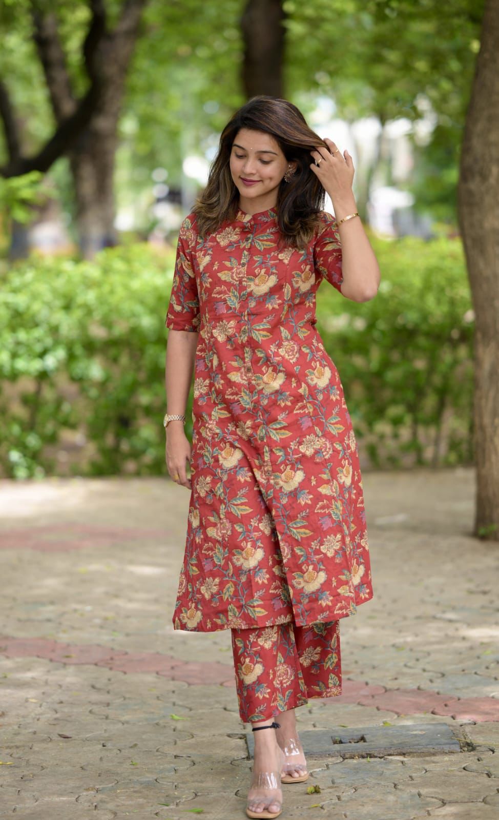 This halter neck cord set in pure cotton is the perfect mix of heritage and modernity. one side pocket in kurti🥰🥰 Comfy plazo pant+ a stylish silhouette = major outfit goals.