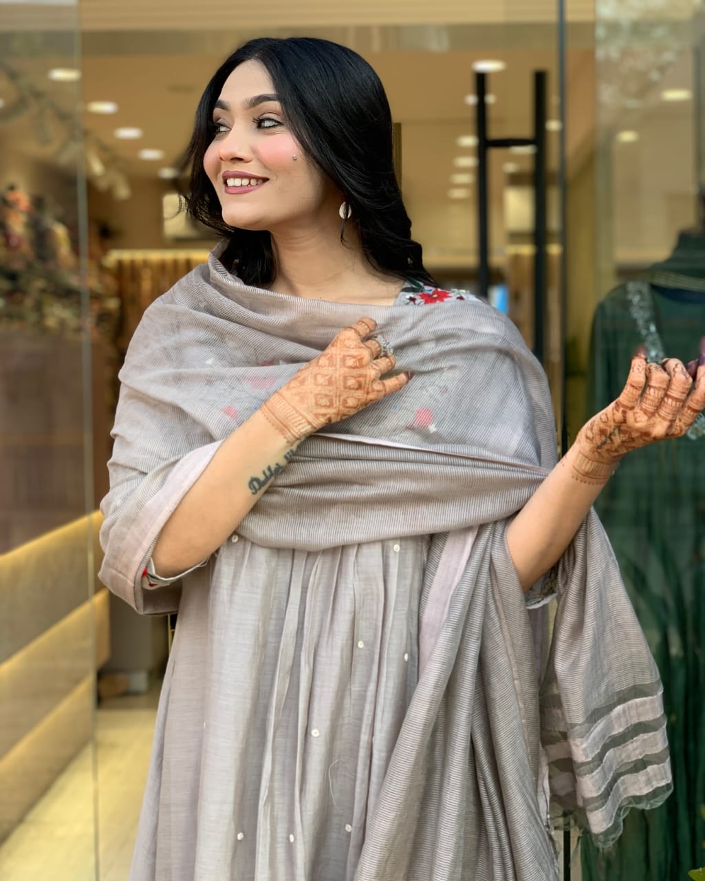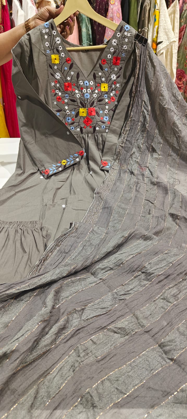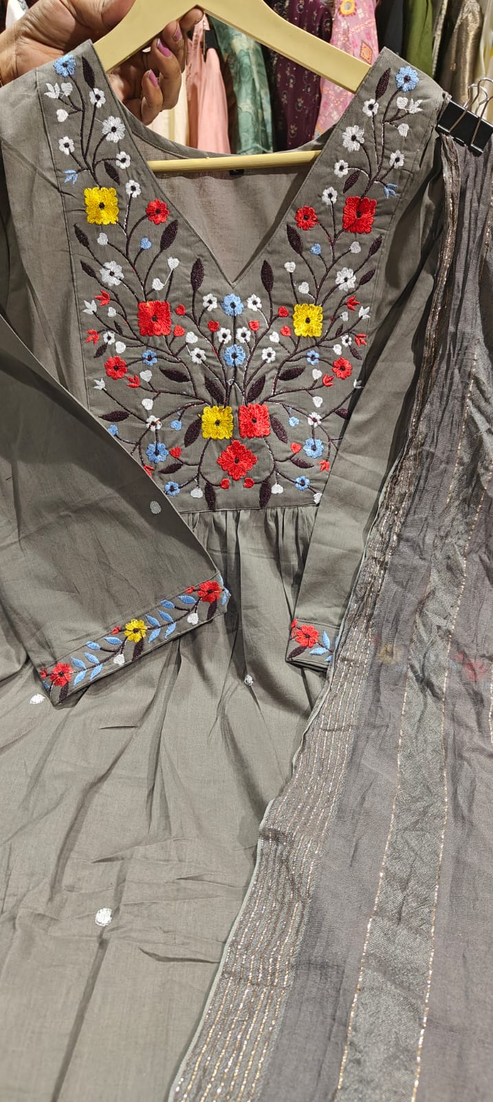 *Details -: Beautiful cotton fabric Anarkali kurti pant and dupatta.
