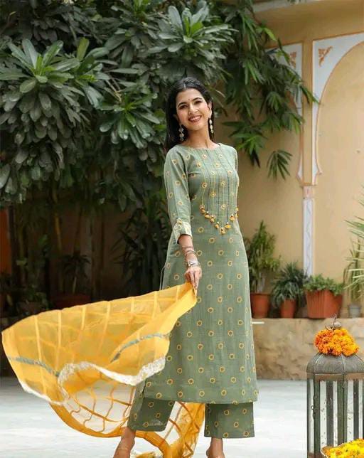 S (Bust Size: 36 in, Shoulder Size: 13 in, Kurta Waist Size: 34 in, Kurta Hip Size: 62 in, Kurta Length Size: 38 in, Bottom Waist Size: 34 in, Bottom Hip Size: 48 in, Bottom Length Size: 38 in, Duppatta Length Size: 2.15 in)